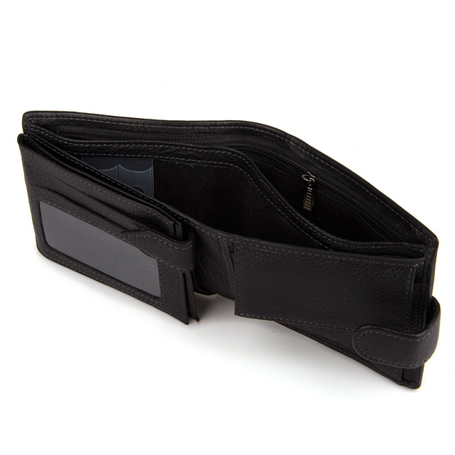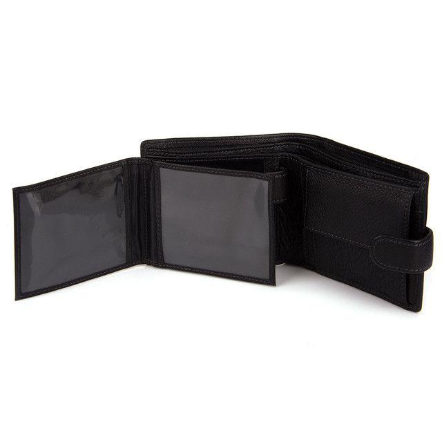Класичний гаманець шкіряний чоловічий Kafa чорний, на кнопці (fb)