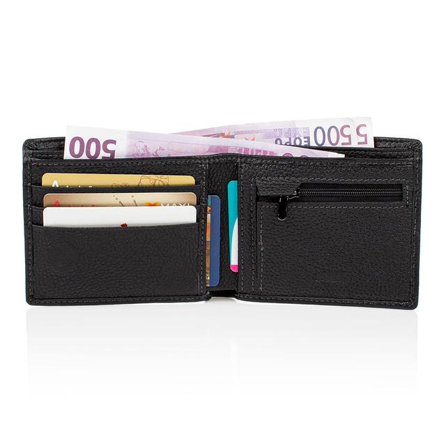 Вміст гаманця: 3 відділення для купюр (одне з них на блискавці), 5 кишень для банківських і дисконтних карток, 1 відділення на блискавці для монет та інших дрібних предметів. Закривається портмоне магнітом.