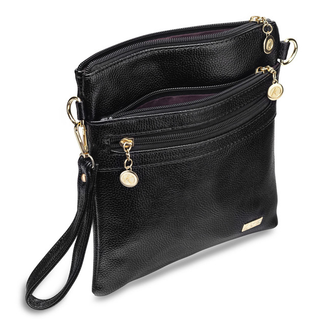 Жіноча сумка-планшет через плече Kafa k0015 чорна, 4 відділення на блискавці