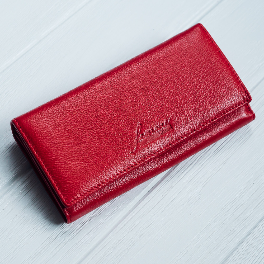 Стильний жіночий гаманець вирізняється модним дизайном і безліччю зручних відділень, що розташувалися в ньому, у такий спосіб, що використовувати такий аксесуар буде одне задоволення. Жіночий гаманець виготовлений із високоякісної натуральної шкіри. Усередині п'ять відділень для купюр, два з яких на блискавці, одне додаткове, дві кишеньки для sim-карток, вісім відділень під картки й одне прозоре. Ззаду відділення на блискавці. Гаманець закривається на кнопку.